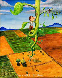 “Ah! you don’t know what these beans are,” said the man; “if you plant them over-night, by morning they grow right up to the sky.”